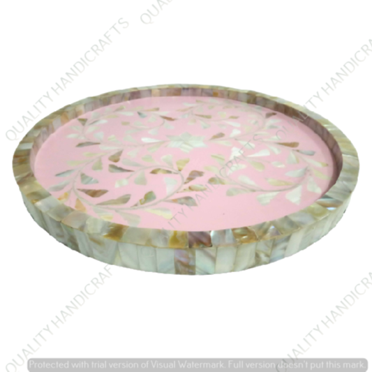 ถาดเสิร์ฟมุกสีชมพูขายดีที่สุด ฐานไม้รับรองโดย EPCH สำหรับโรงแรม ร้านอาหาร เครื่องครัว คุณภาพอินเดีย