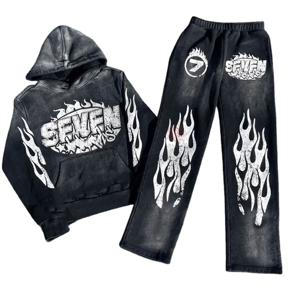 ชุดวอร์มลายพิมพ์กรดสไตล์วินเทอร์ขายดี พร้อมฮู้ดพิมพ์ลายพัฟฟ์แบบกำหนดเอง เสื้อฮู้ดและกางเกงจ็อกเกอร์เข้าชุด สีพื้น สำหรับผู้ชายและผู้หญิง