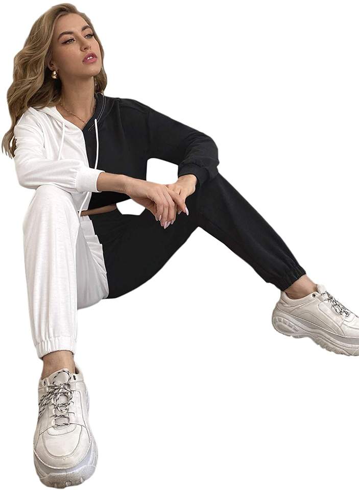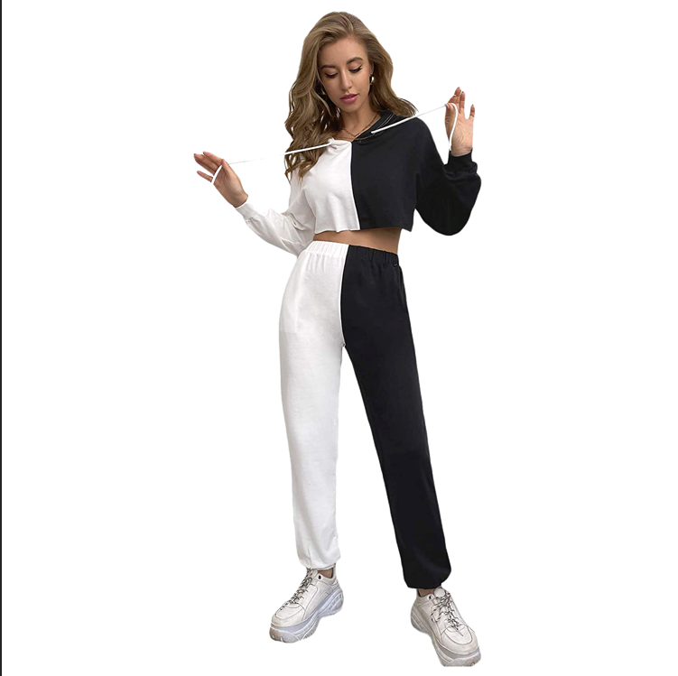 เสื้อครอปท็อปขายดีประจำฤดูหนาว ชุดวอร์มผู้หญิงทรงโอเวอร์ไซส์ ตัดต่อสีสันสดใส ผ้าเฟรนช์เทอร์รี่คุณภาพดี ชุดสเวตเตอร์ผ้าฝ้ายไซส์ใหญ่พิเศษ