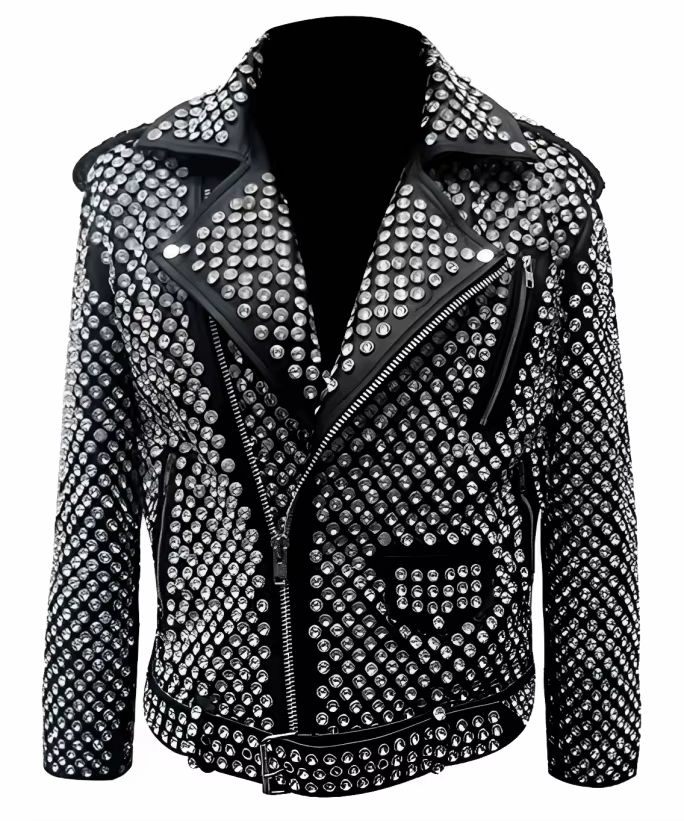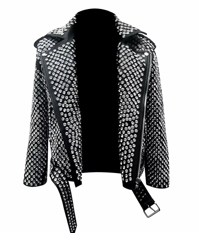เสื้อแจ็คเก็ตหนังผู้ชายประดับหมุด