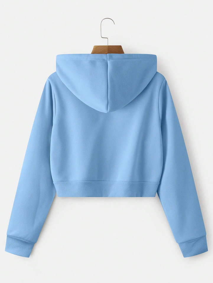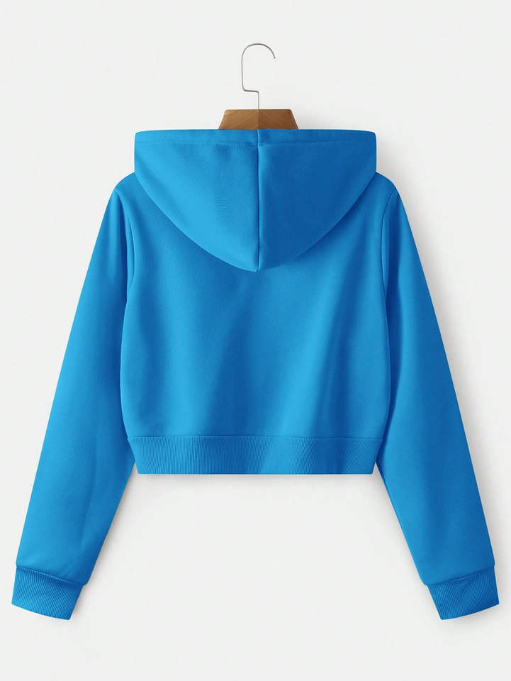 เสื้อครอปฮู้ดดี้ผู้หญิงขายดี ผ้าถักนิตติ้ง คอตตอน สไตล์ลำลอง สตรีทแวร์ โลโก้ด้านหน้า ไหล่ตก ผลิตในปากีสถาน