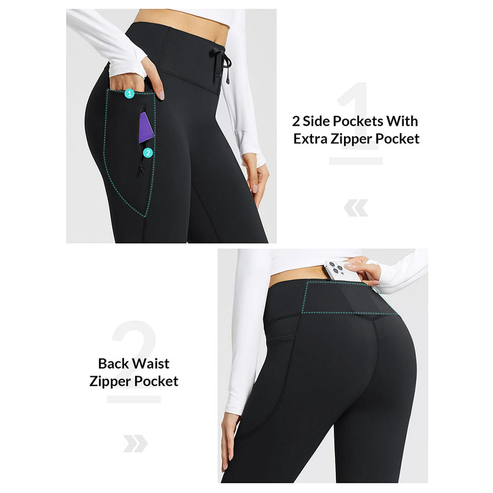 กางเกงเลกกิ้งขาบานขายดีสำหรับผู้หญิง เอวสูง ระบายอากาศได้ดี ยืดได้สี่ทิศทาง ไร้ตะเข็บ ป้องกันแบคทีเรีย เหมาะสำหรับออกกำลังกาย สีดำ