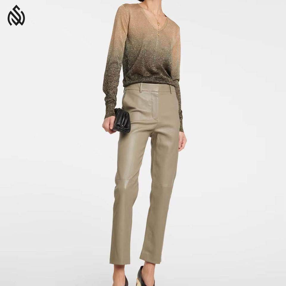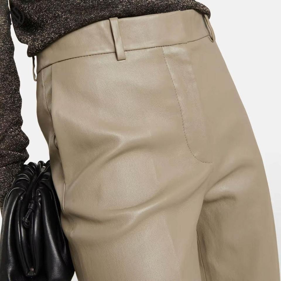 กางเกงหนังสำหรับผู้หญิงกางเกงหนังแบบลำลองสีทึบระบายอากาศได้ดีบางพอดี