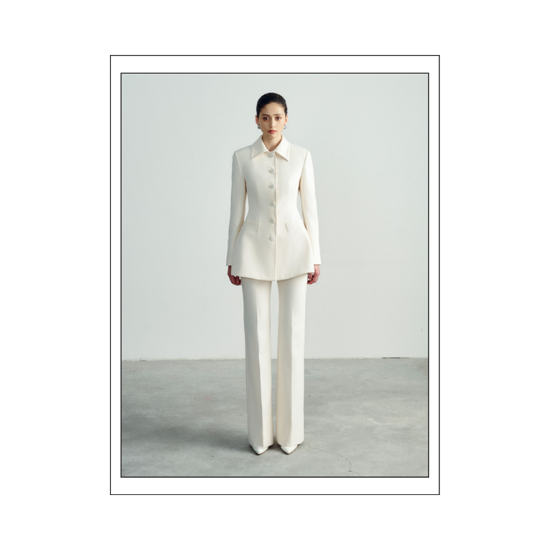 กางเกงขาบานขาตรงสำหรับผู้หญิงกางเกงขาบาน73% ผ้าโพลีเอสเตอร์17% ใยสังเคราะห์10% ผ้าสแปนเด็กซ์สีขาว