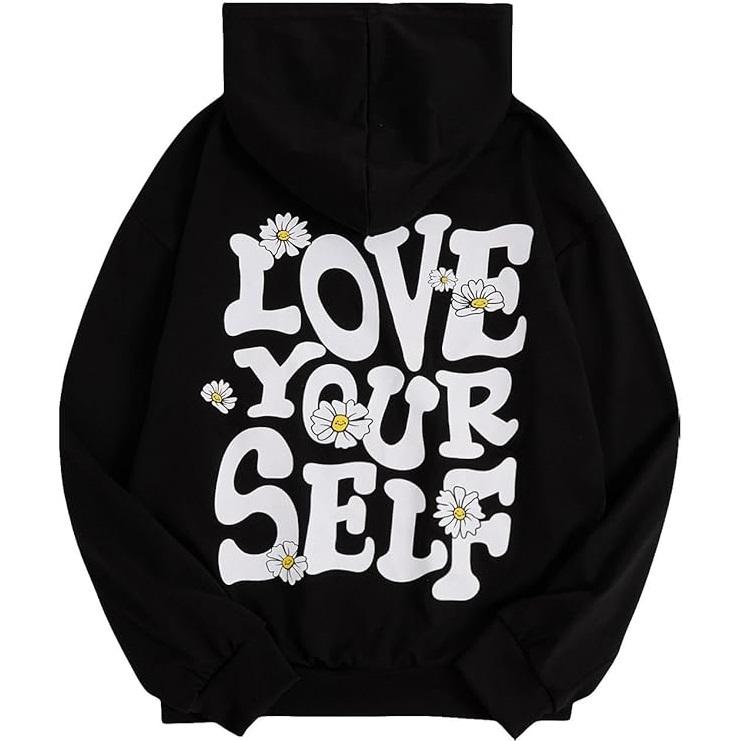 Best Selling Women's 100% Cotton Knitted Winter Long Sleeve Shoulder Slope Neck Printed Comfortable Pullover Hoodie Front
