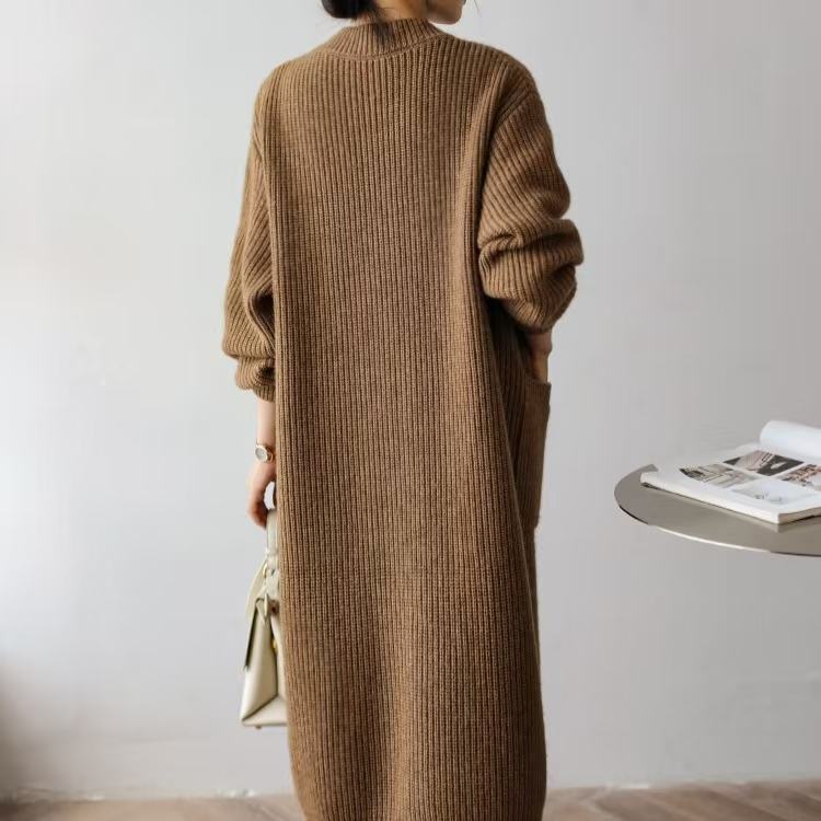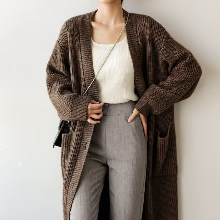 เสื้อสเวตเตอร์คาร์ดิแกนแขนยาวกระดุมแถวเดียวทรงโอเวอร์ไซส์สำหรับผู้หญิงเสื้อคาร์ดิแกนลำลองมีกระเป๋าขนาดใหญ่