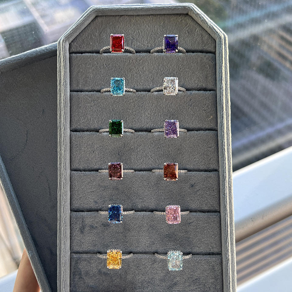 Royal blue (4 carat moissanite), Emerald green color (4 carat moissanite), Lemon yellow (4 carat moissanite), Red (4 carat moissanite), Excellent white (4 carat moissanite), Champagne color (4 carat moissanite)