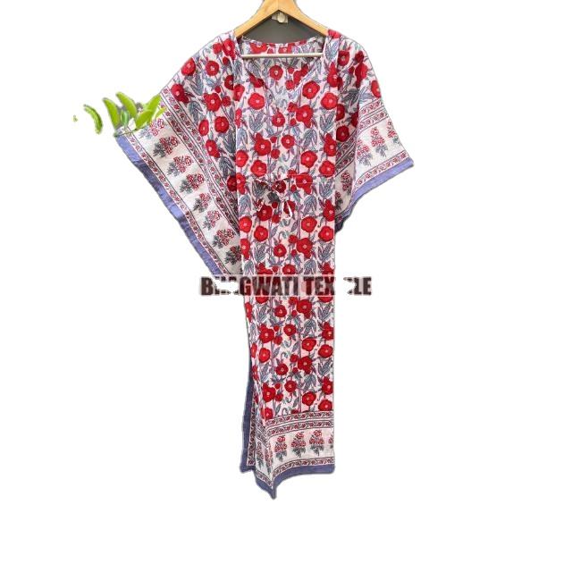 เดรสแม็กซี่สำหรับผู้หญิงเดรสคาฟตันยาวผ้าคอตตอนสไตล์อินเดียผ้าคลุมชายหาดที่เป็นมิตรต่อสิ่งแวดล้อม
