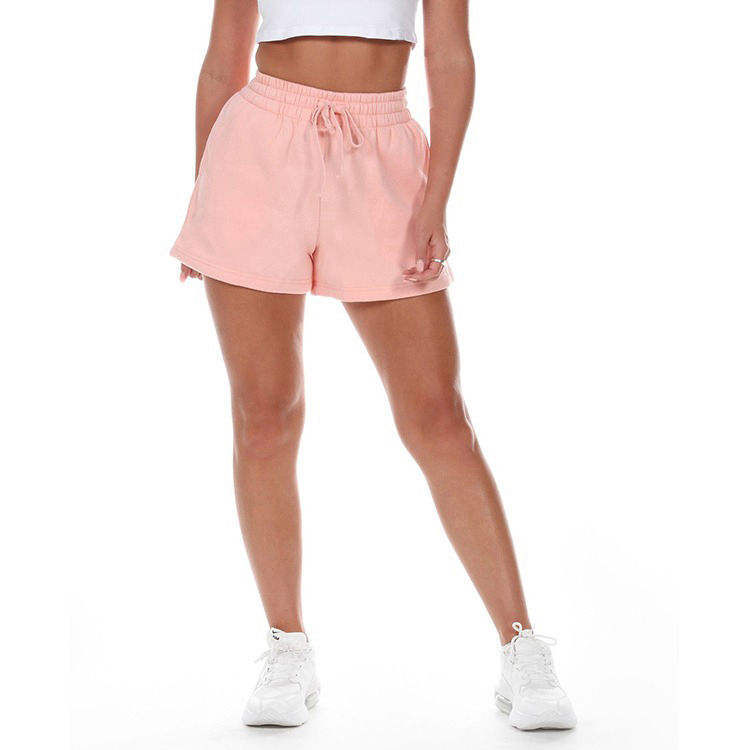 กางเกงขาสั้นผู้หญิงขายดีที่สุด ปิดด้วยเชือกผูก เอวกลาง พิมพ์โลโก้ตามสั่ง-บริการ OEM เสื้อผ้าแนวสตรีท มีกระเป๋า