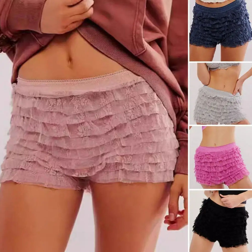 Best Selling Womens Lace Ruffle Shorts Multi Layered Low Waist Short Lolita Style Lace Trim Decorated Fashion Summer Bottoms
