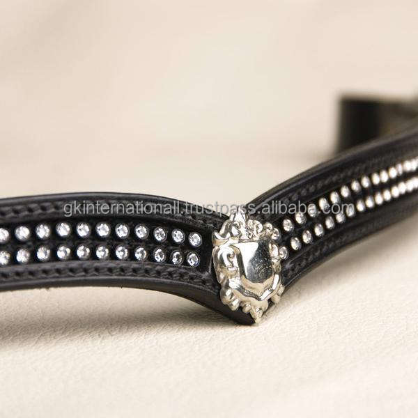 แถบคิ้วหนังรูปตัววีคริสตัลประดับพลอยเทียมขนาดใหญ่แวววาวสายรัดคิ้วรูปม้าตามสั่ง