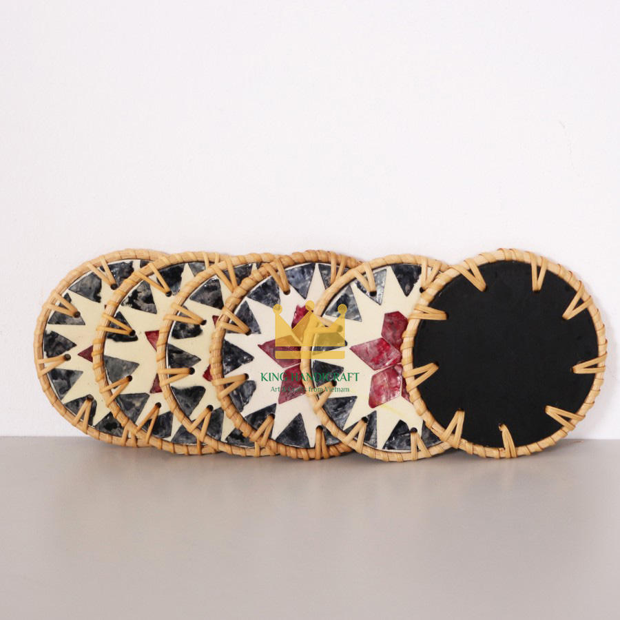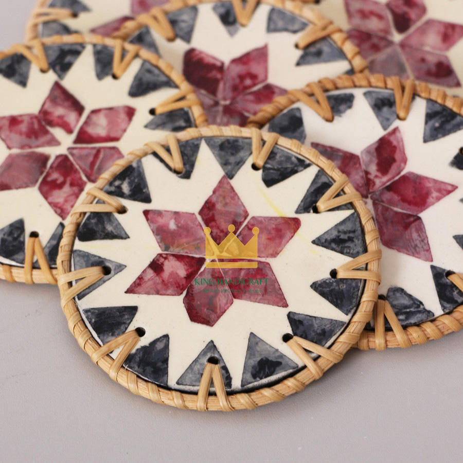 ชุดถาดรองแก้วหวายทำด้วยมือสำหรับโรงแรมหรือร้านอาหาร