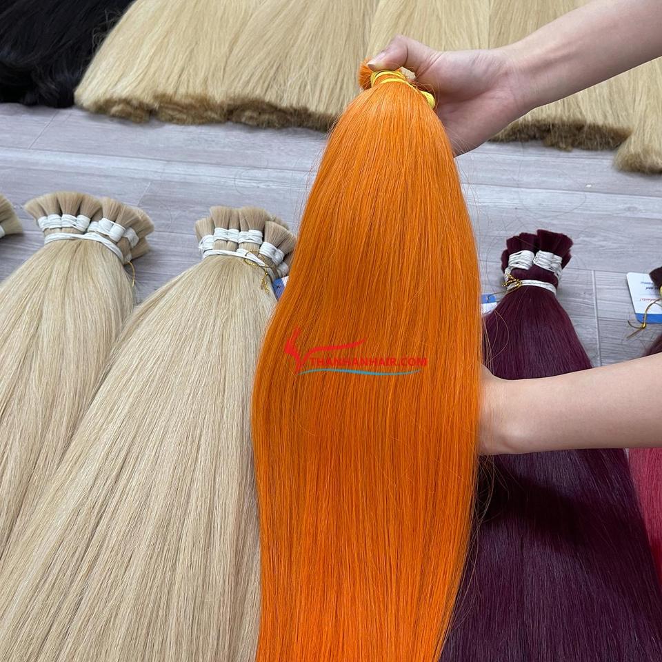ขายดีที่สุด!!! สีส้มตรงผม100% มนุษย์ผมหนังกำพร้าชิดผม