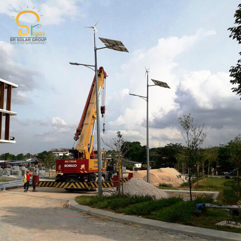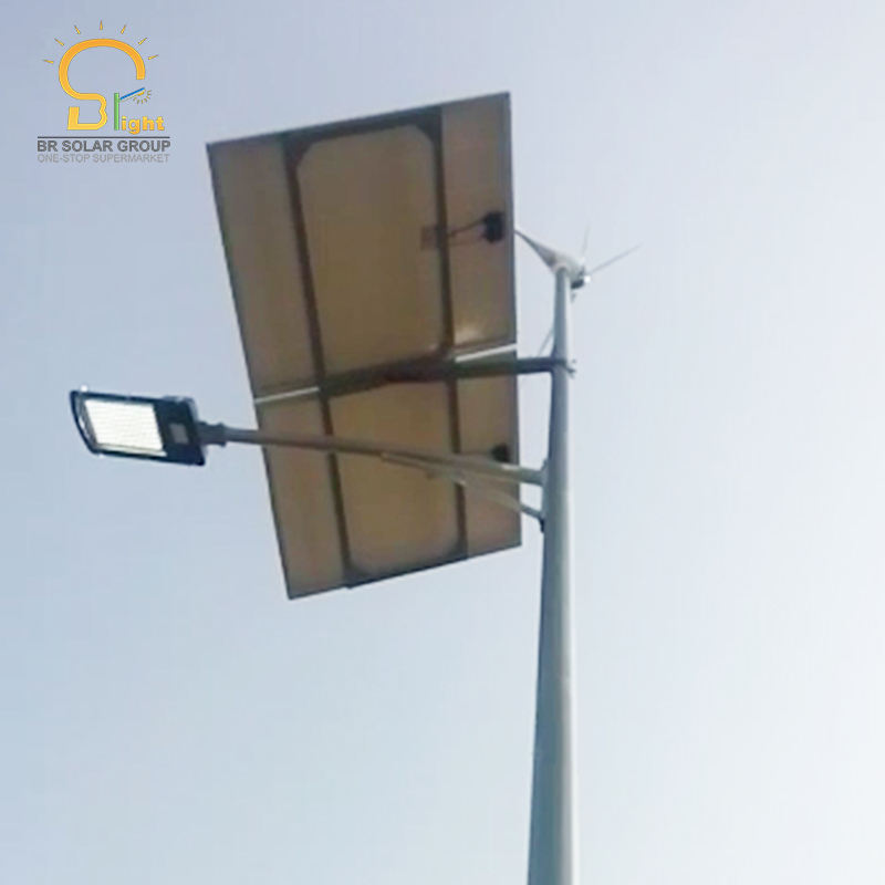 ไฟถนนโซลาร์เซลล์แบบไฮบริดพลังงานลมและแสงอาทิตย์ที่ดีที่สุดในโปแลนด์ รุ่นติดตั้งแนวตั้ง 300 วัตต์ พร้อมกังหันลม ไฟถนนไฮบริดพลังงานลมและแสงอาทิตย์ 6 เมตร 30 วัตต์