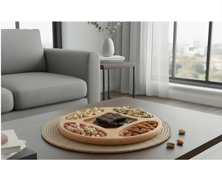 ถาดไม้แบ่งช่องสำหรับจัดแสดงสินค้ากีฬา ของตกแต่ง ขนม และของแห้ง