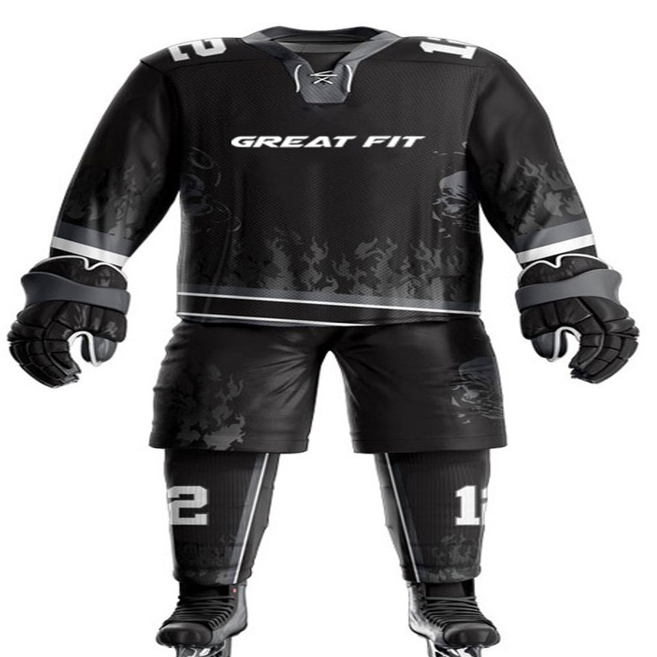 ชุดกีฬาทีมที่ดีที่สุด ชุดฮอกกี้น้ำแข็ง 100% โพลีเอสเตอร์ สำหรับฝึกซ้อม ขายส่ง ชุดฮอกกี้น้ำแข็งคุณภาพสูง เนื้อผ้านุ่ม สำหรับผู้ชาย