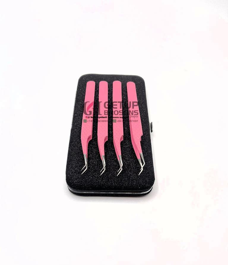 แหนบต่อขนตาทำจากสเตนเลส45องศาเคลือบผงสีชมพู45องศาอุปกรณ์เสริมความงามหัวเงินออกแบบโลโก้ได้ตามต้องการ
