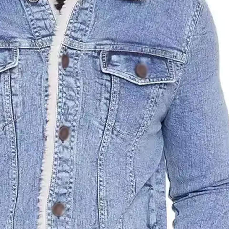 แจ็กเก็ตผ้ายีนส์สำหรับฤดูหนาวของผู้ชายแจ็กเก็ตผ้าเดนิมสไตล์ปกติขนาดปกติ