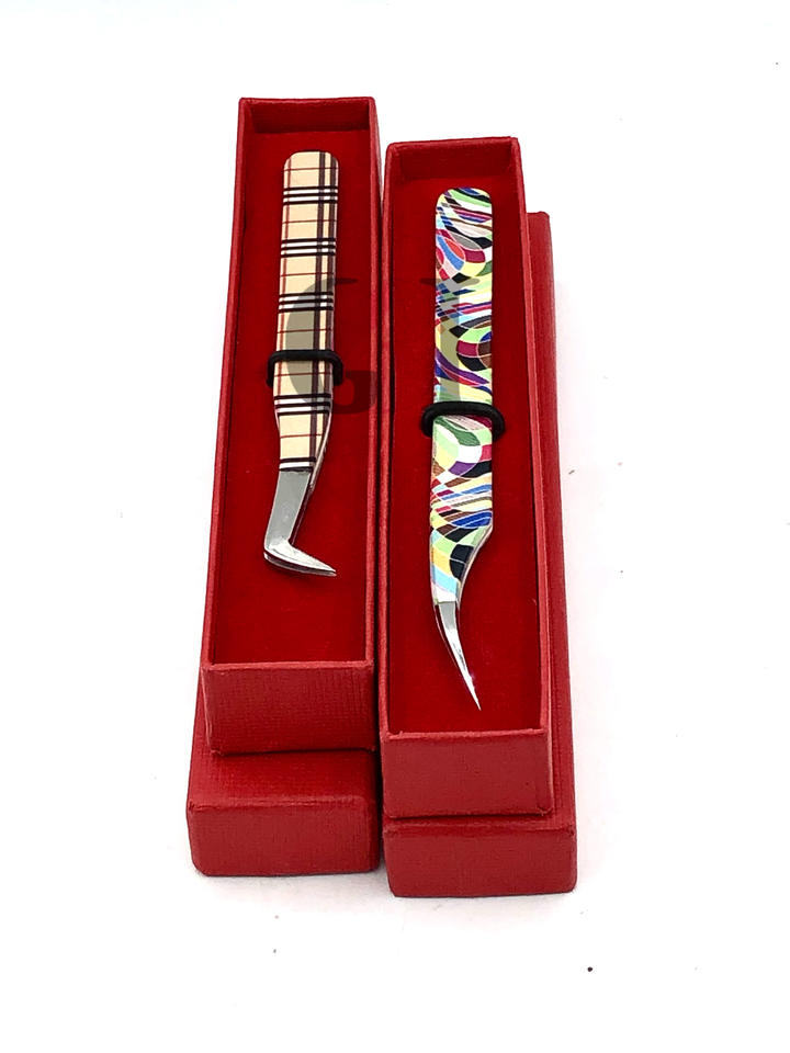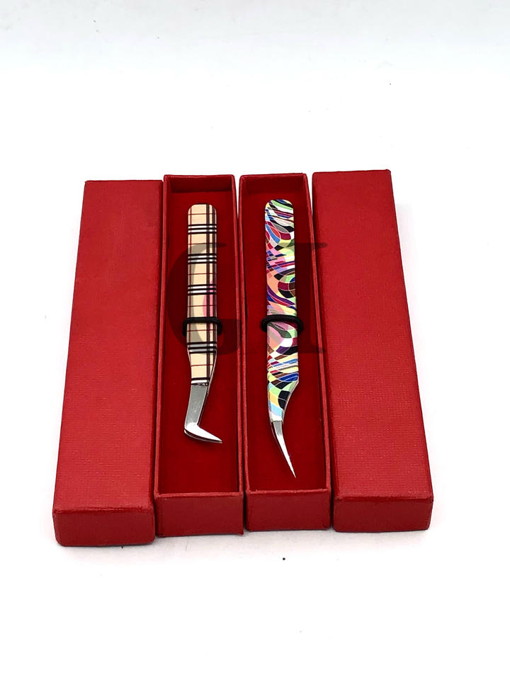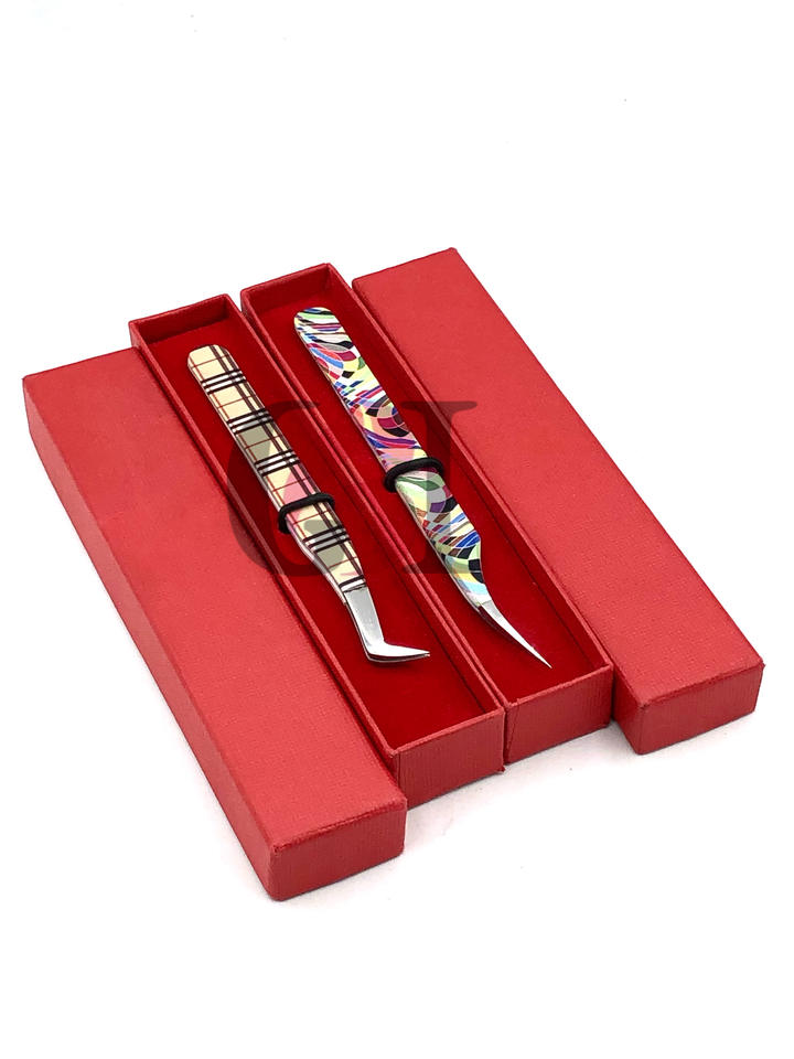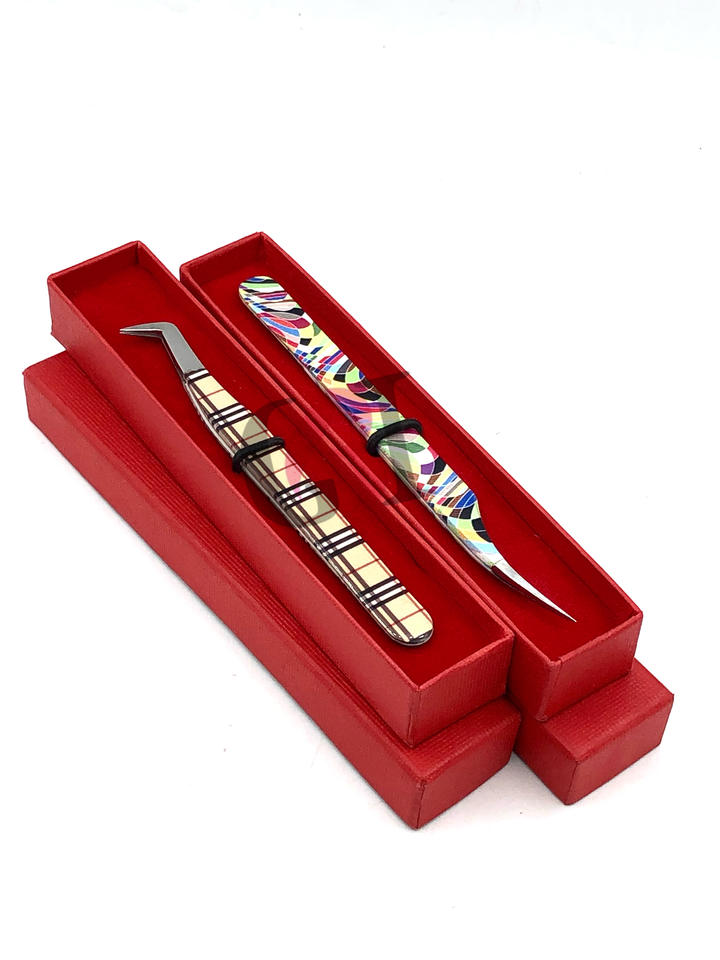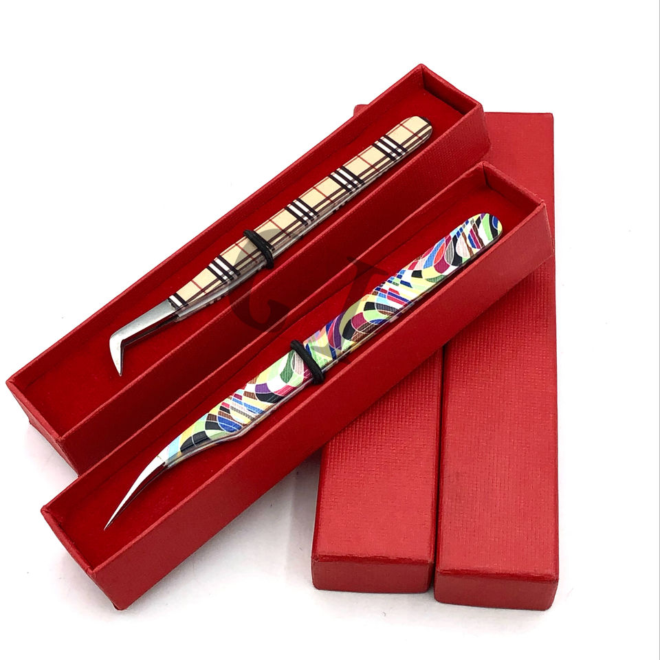 แหนบต่อขนตาแบบแยกปลายเงินหัวเคลือบกระดาษดีไซน์ต่างๆสไตล์รัสเซียปรับแต่งโลโก้ได้ตามต้องการอุปกรณ์ความงาม
