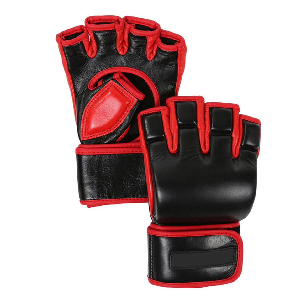 ผู้ผลิตที่ดีที่สุด บริการ OEM ถุงมือฝึกซ้อม MMA สีแดงดำ วัสดุสัมผัสนุ่ม ผลิตในปากีสถาน ถุงมือชกมวยสีแดงดำ