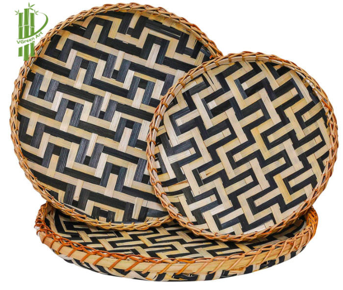 ถาดหวายไม้ไผ่ทรงกลมสำหรับใช้ในห้องครัวและห้องนั่งเล่นถาดเก็บผลไม้แบบคลาสสิกเป็นมิตรต่อสิ่งแวดล้อม