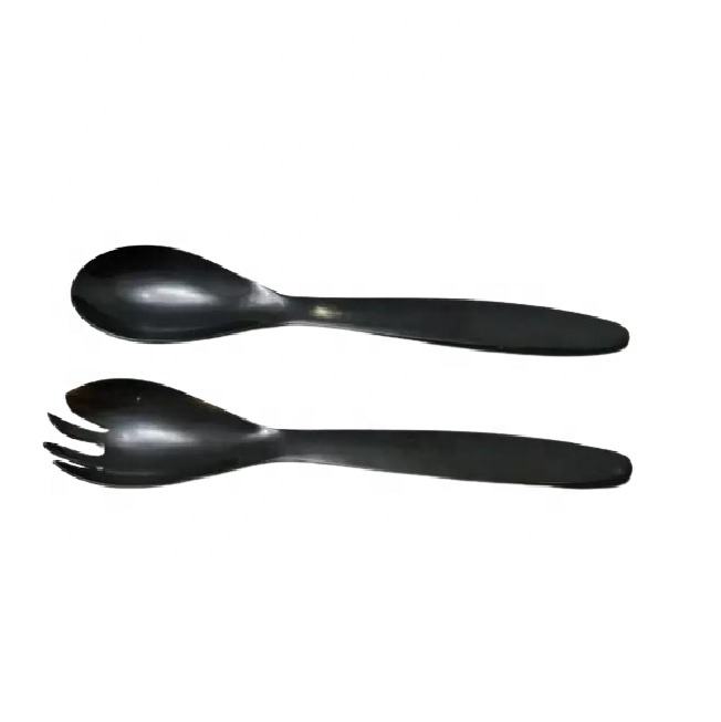 ชุดช้อนส้อมและช้อนสลัด,อุปกรณ์สลัดทันสมัยมือจับโลหะเขาสัตว์บัฟฟาโลดีไซน์จากอินเดีย