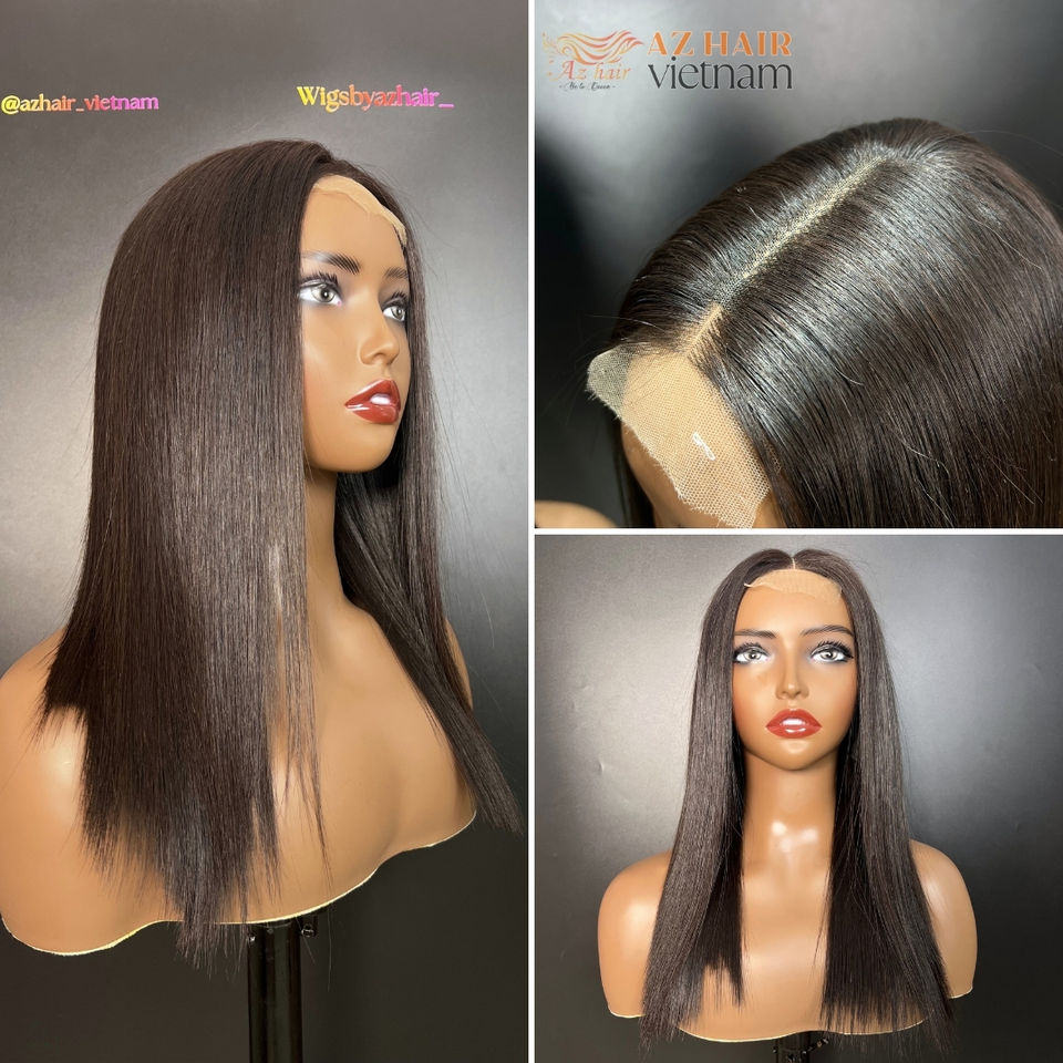 วิกผมตรงสีดำเนื้อสัมผัส16นิ้วปิดลูกไม้สีธรรมชาติใสส่วนกลางผมดิบยาวคุณภาพดีที่สุด