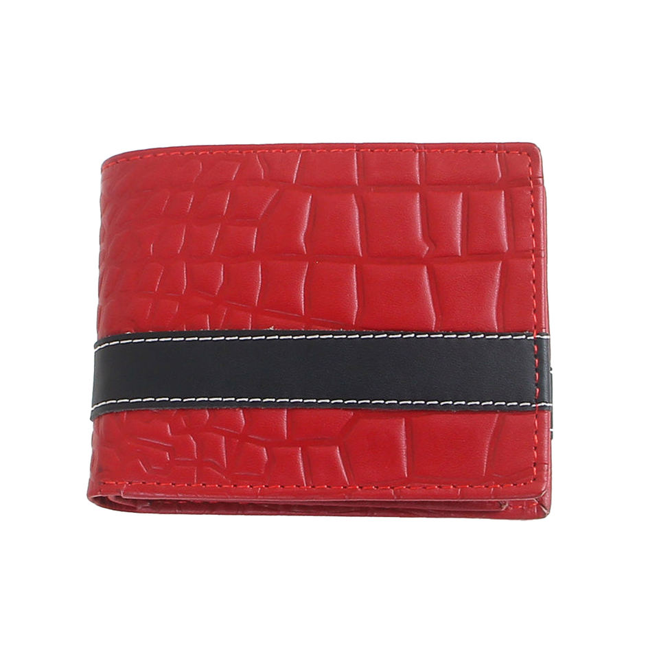 กระเป๋าสตางค์หนัง PU แบบพับสองทบสำหรับผู้ชายพร้อมโลโก้ที่ปรับแต่งได้เปิดปิดและลายทาง