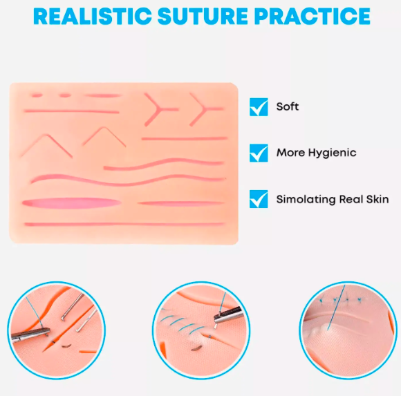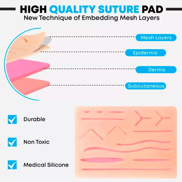 แผ่นซิลิโคนที่ได้รับการจัดอันดับสูงสุดทนทานชุดฝึกเย็บแผลทางการแพทย์พร้อมเครื่องมือเหล็ก