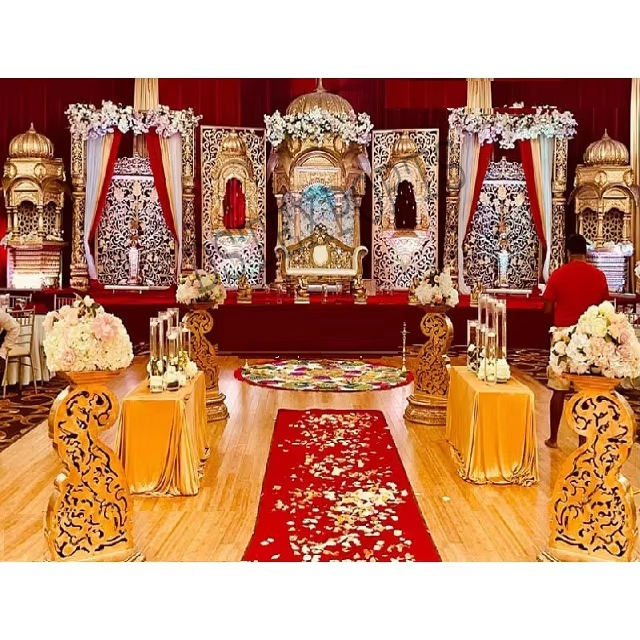 ฉากหลังแต่งงานแบบดั้งเดิมที่ดีที่สุดของอินเดียใต้ตกแต่งเวทีผ้าใยใหญ่สำหรับงานแต่งงานอินเดียใต้