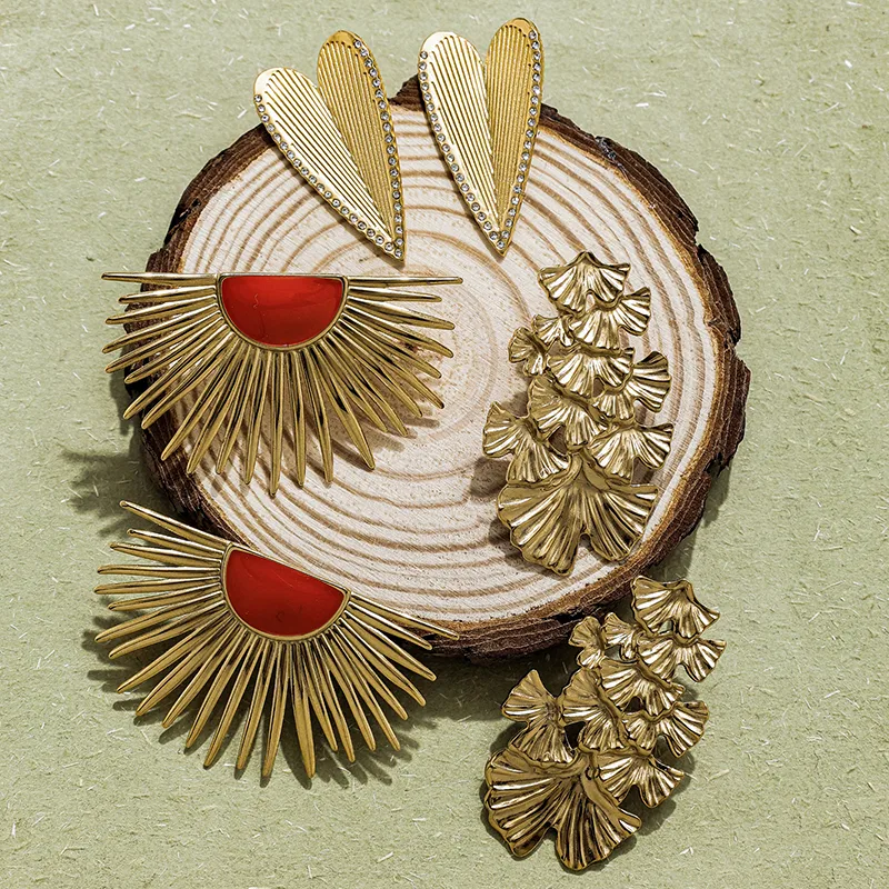 Best Trendy 18K Real Gold Plated Zircon Heart Fan Shaped Leaf C Shaped Multi Shaped Earrings For Women Daily Wear Jewelry
