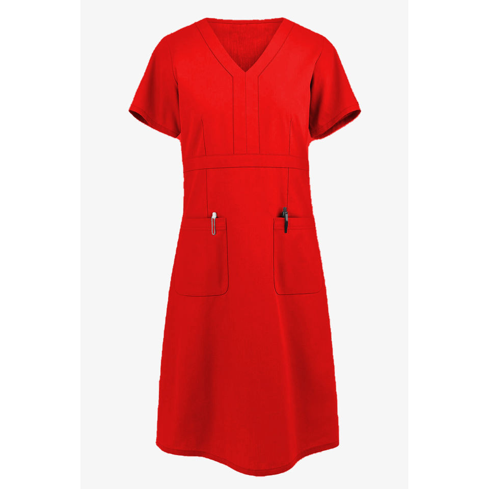 ชุดเดรสสำหรับผู้หญิงชุดกระโปรงคอวีมีกระเป๋าหลายช่องชุดขัดผิวปรับแต่งโลโก้ได้ตามต้องการ