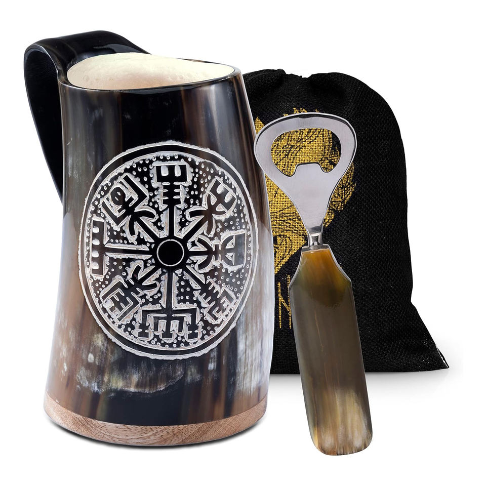 แก้วเบียร์ทรงเขาสัตว์ไวกิ้งแบบกำหนดเองได้ ดีไซน์สวยงาม ทำจากเขาควายธรรมชาติ ฝาปิดทำจากวัสดุสแตนเลสเป็นมิตรกับสิ่งแวดล้อม เหมาะสำหรับการเดินทางและงานปาร์ตี้