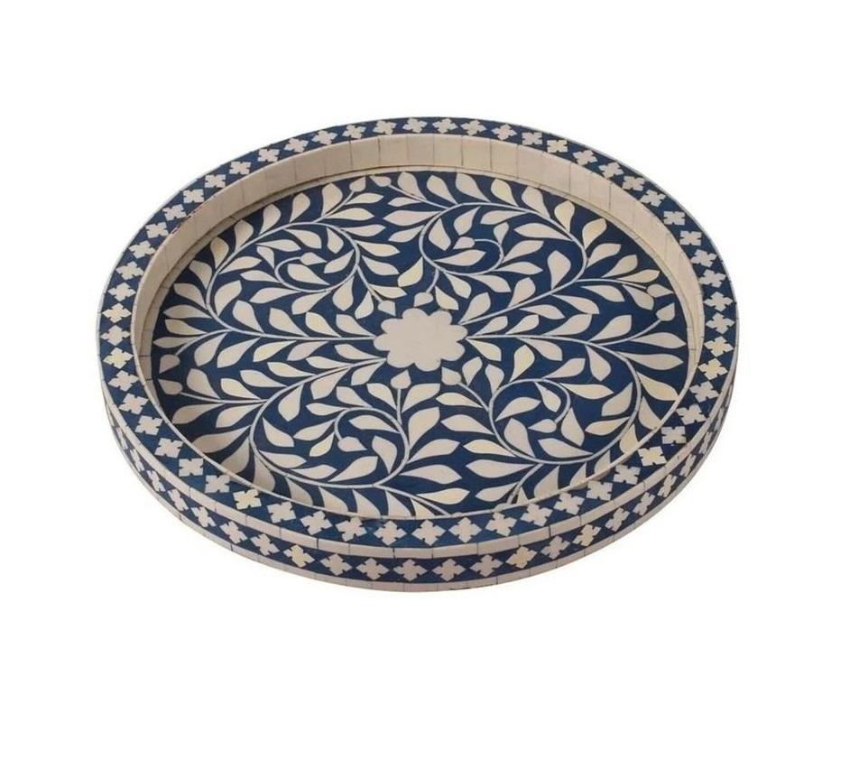 ถาดใส่กระดูกฝังลายใบไม้หรูหราถาดเสิร์ฟสำหรับโต๊ะกาแฟถาดเสิร์ฟจากอินเดีย