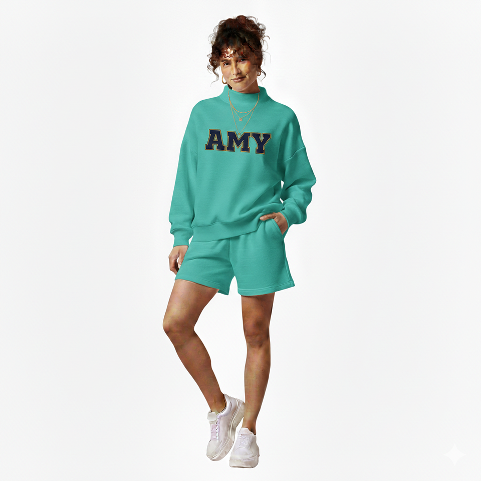 ชุดเซ็ตเสื้อคอเต่าและกางเกงขาสั้นสำหรับผู้หญิง