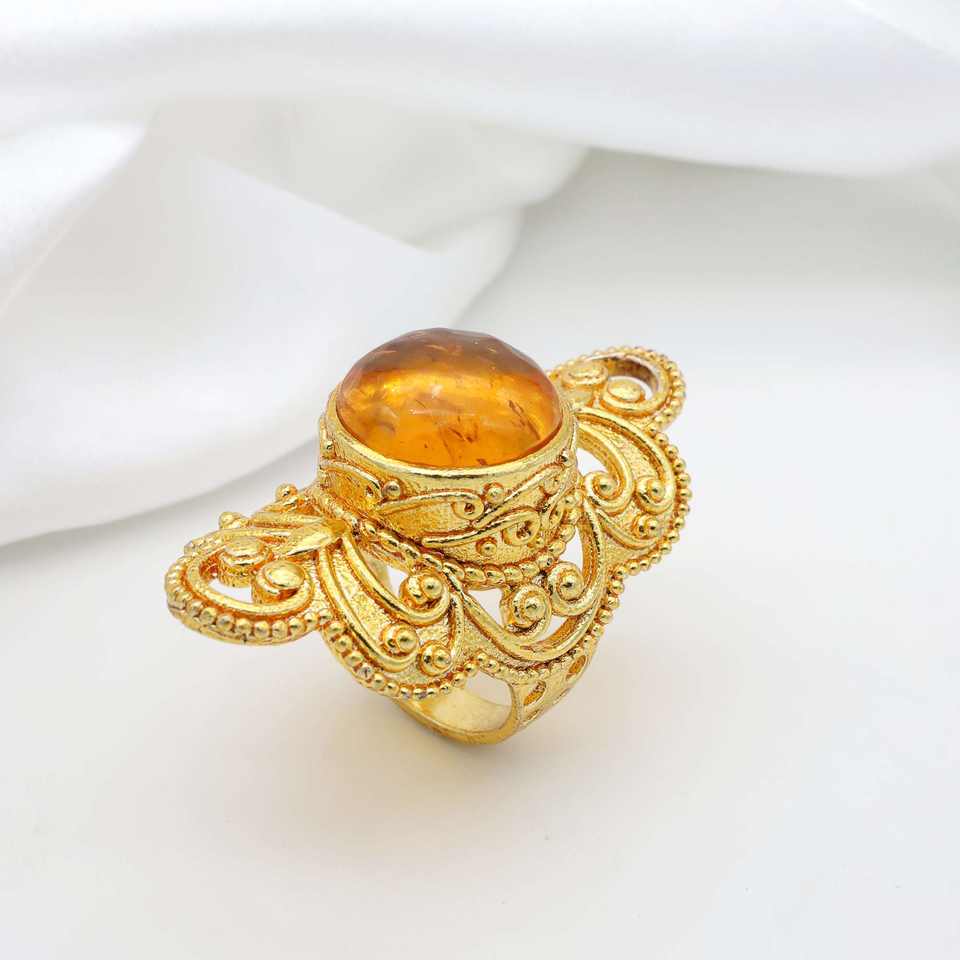 แหวนทันสมัยทำด้วยมือสำหรับผู้หญิงแหวนทองเหลืองชุบทองซิทรีนสำหรับผู้หญิงเครื่องประดับทองเหลือง