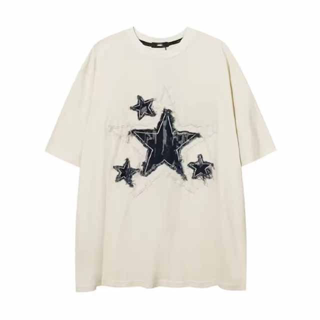 เสื้อยืดคอกลมแขนสั้นสำหรับผู้ชายเสื้อโอเวอร์ไซส์แบบสตรีทแวร์ปักลายวินเทจ