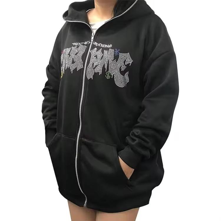เสื้อฮู้ดดี้ผ้าฟลีซน้ำหนักเบาแบบซิป สีพื้น ประดับเพชรเทียม สำหรับผู้ชายและผู้หญิง ลายพิมพ์ดิจิทัล สำหรับฤดูหนาวที่ดีที่สุด