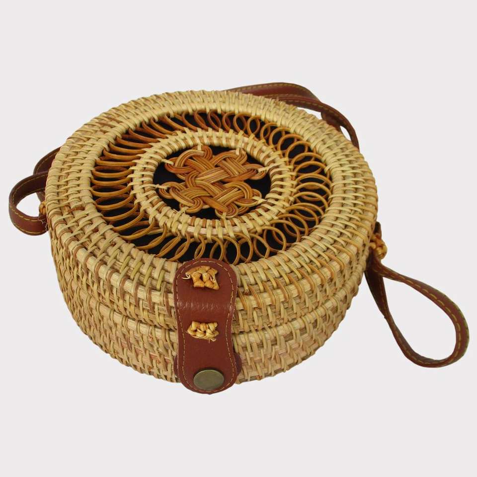 Round shape shoulder rattan bag