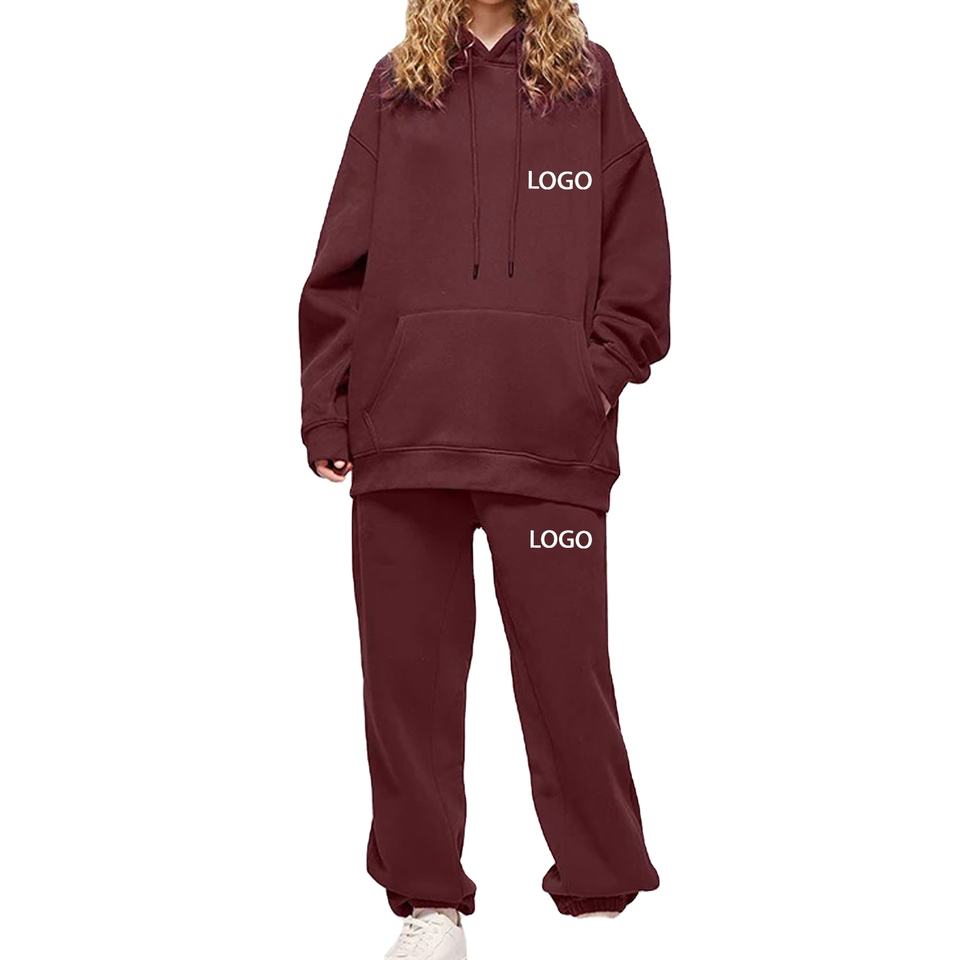 ชุดวอร์มผ้าคอตตอนหนาสำหรับผู้หญิงชุดวอร์มสองชิ้นสำหรับวิ่งจ๊อกกิ้งแบบเรียบๆชุดวอร์มแบบสวมหัวขนาดใหญ่