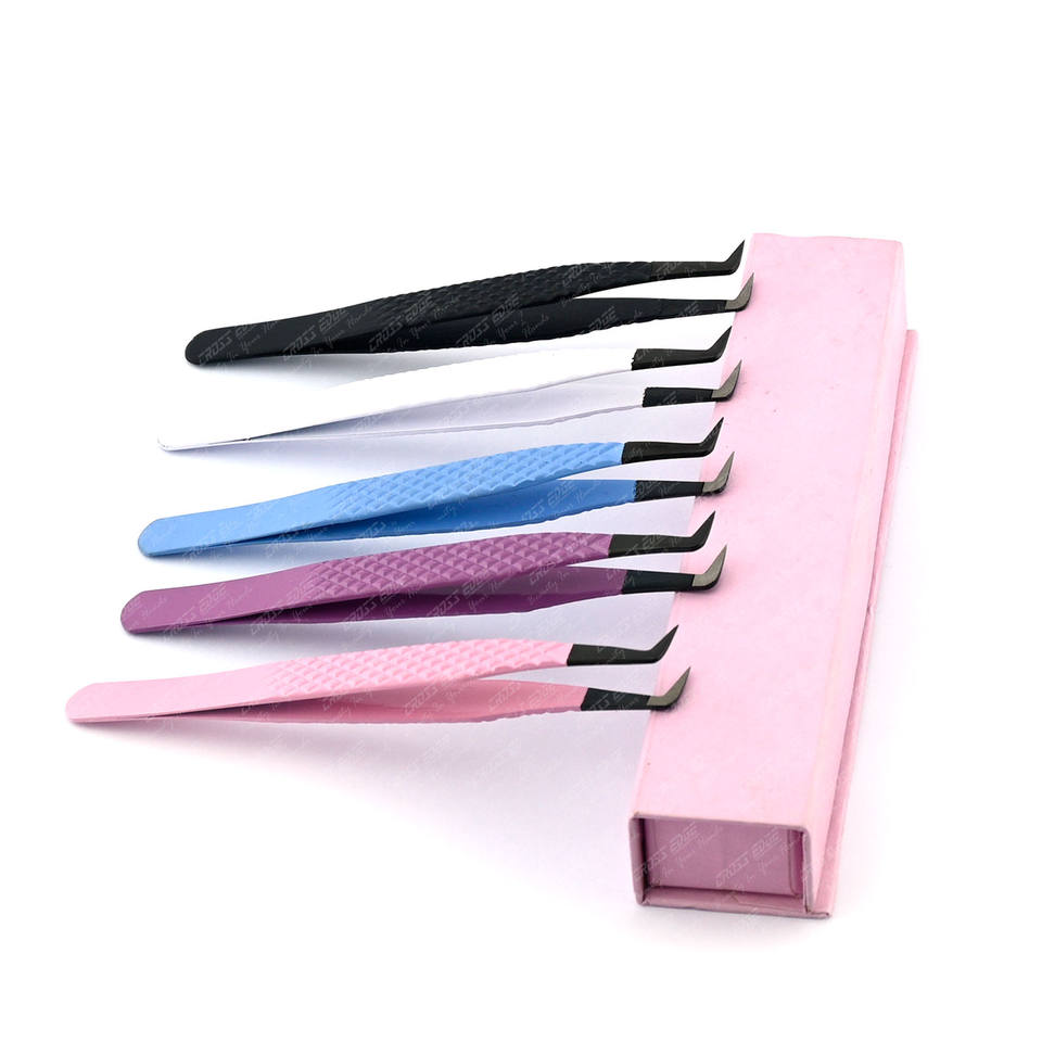 ชุดแหนบต่อขนตาปลายไฟเบอร์ 90 องศา พร้อมบรรจุภัณฑ์แบบปรับแต่งได้