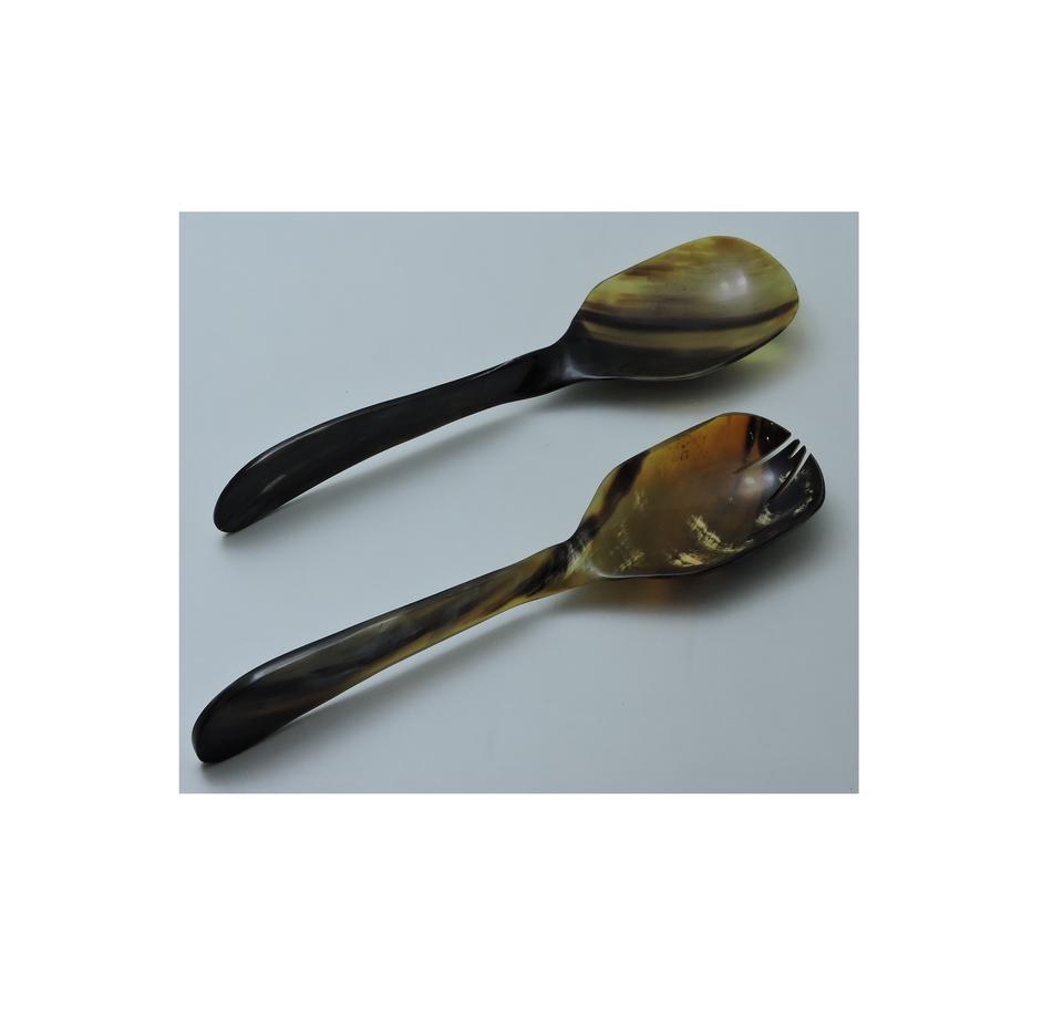 ชุดช้อนตักสลัดทำจากเขาควายธรรมชาติ 2 ชิ้น งานแฮนด์เมด คุณภาพดีที่สุดในประวัติศาสตร์ ราคาถูกที่สุด