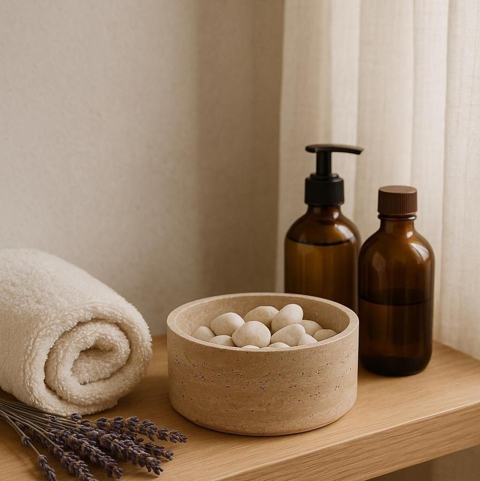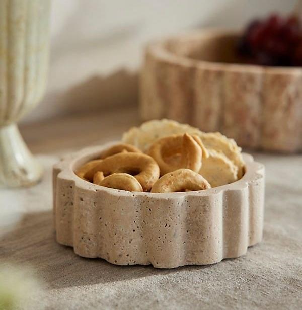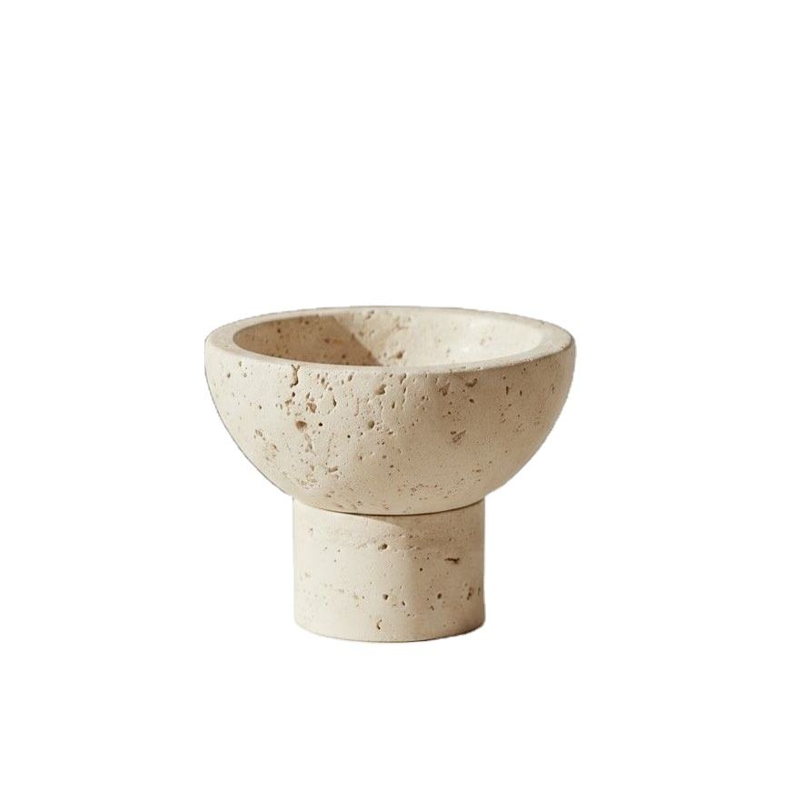 ชามตกแต่งหินทราเวอร์ทีนแบบมินิมอล ดีไซน์ทันสมัย ฐานทรงกระบอก สำหรับตกแต่งโต๊ะกลางสไตล์โมเดิร์น ขายดี ล่าสุด