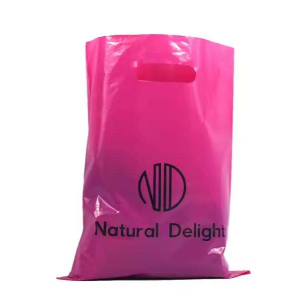 ถุงช้อปปิ้งพลาสติกพีอีสำหรับเสื้อผ้ามีหูหิ้วสำหรับเสื้อผ้าพิมพ์โลโก้ได้ตามต้องการ