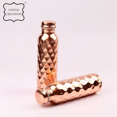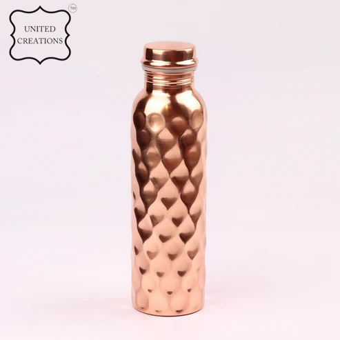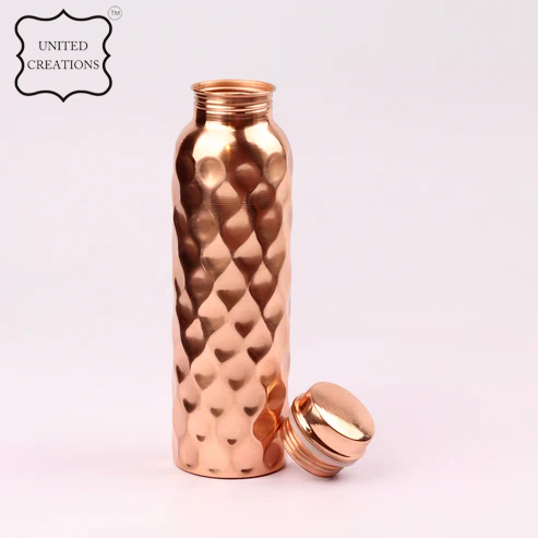 ขวดน้ำทองแดงบริสุทธิ์รูปเพชร100% ทำด้วยมือกันรั่วซึมดื่มน้ำทองแดงบริสุทธิ์เครื่องดื่มสำหรับน้ำเดือด
