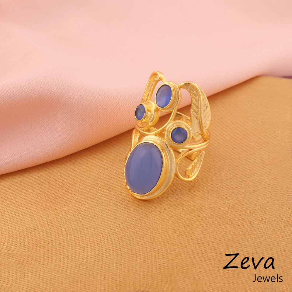 ที่มีคุณภาพดีที่สุดของหินโมราสีฟ้ากับอัญมณีควอตซ์สีฟ้าขนาดใหญ่แหวนทองเหลืองส่วนบุคคลผู้หญิงที่ออกแบบหรูหราแหวนใบไม้เครื่องประดับ