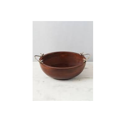 ชามไม้ด้ามจับเหล็กทรงกลมขนาดพิเศษทำด้วยมือจากธรรมชาติ