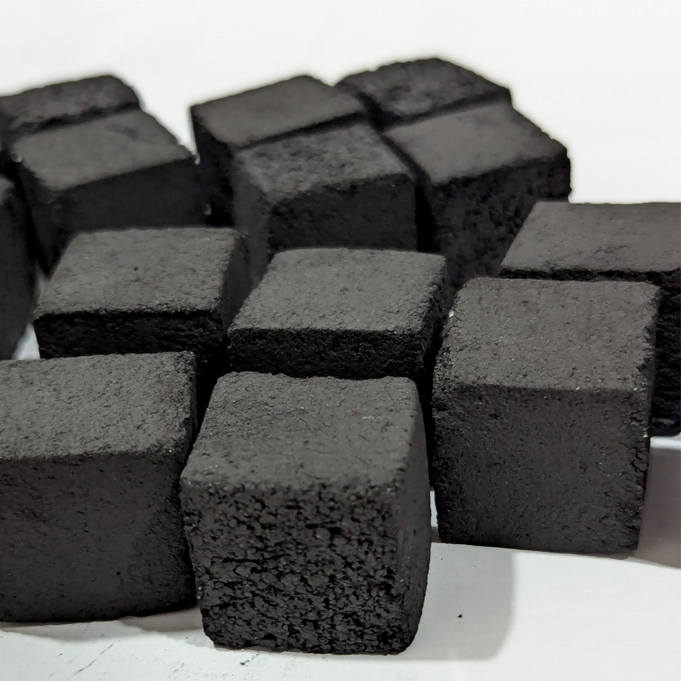 ถ่านกะลามะพร้าวอัดแท่ง ผลิตด้วยเครื่องจักร ขายดี เป็นมิตรต่อสิ่งแวดล้อม ความแข็งสูง รูปทรงลูกบาศก์ ไม่มีสารเติมแต่ง สำหรับบุหรี่กัญชา