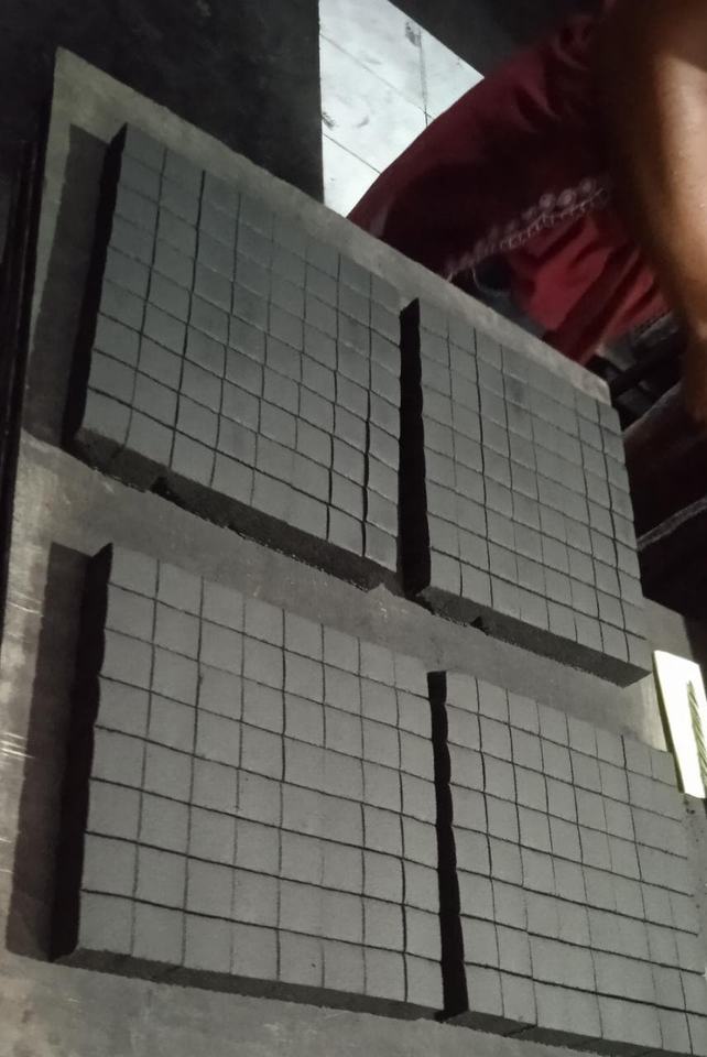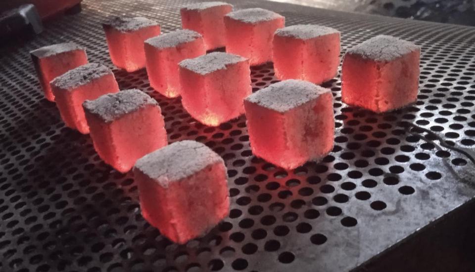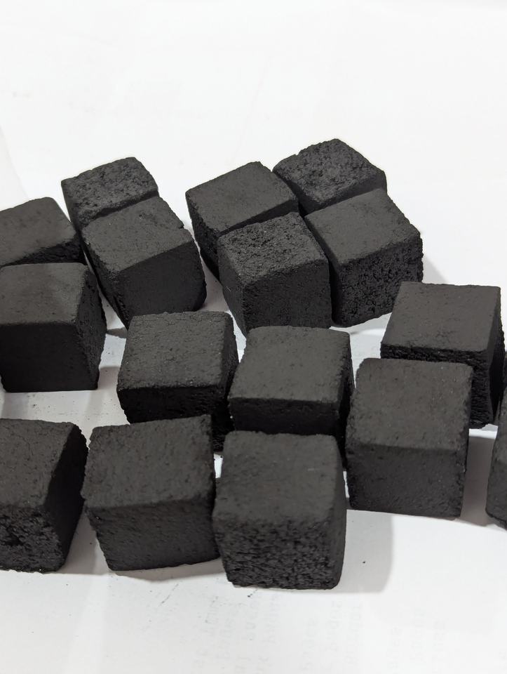 ถ่านอัดแท่งจากกะลามะพร้าวธรรมชาติ ผลิตด้วยเครื่องจักร ขายดี เป็นมิตรต่อสิ่งแวดล้อม ความแข็งสูง รูปทรงลูกบาศก์ 25x25x25 มม. ไม่มีสารเติมแต่ง
