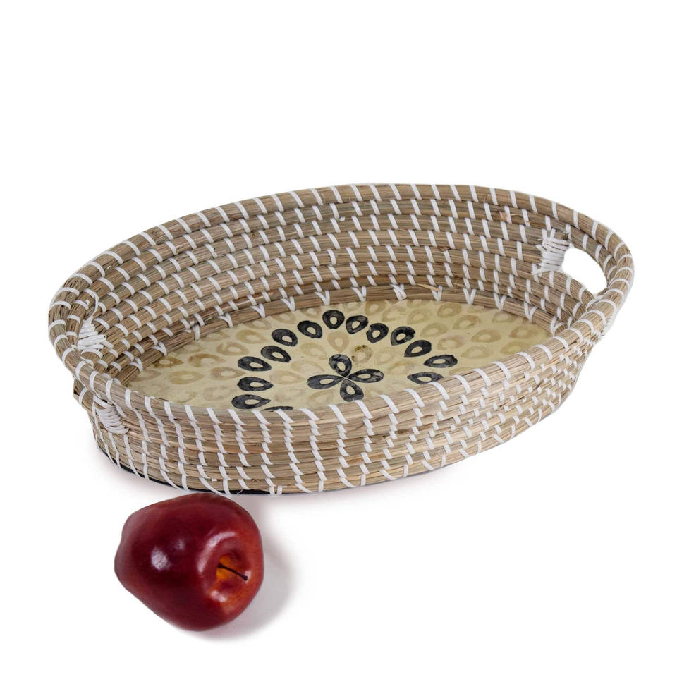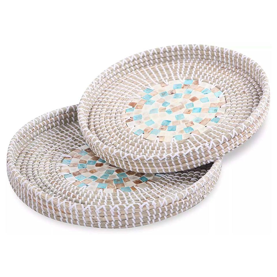 ถาดหญ้าทะเลขายดีสำหรับเสิร์ฟอาหารเช้า ภาชนะเสิร์ฟจากหญ้าทะเล ถาดสานจากฟาง